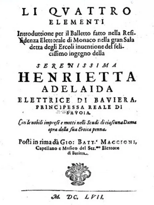 Кроме того, сохранились либретто Маччиони ещё как минимум для четырёх сочинений, поставленных в Мюнхене. Два из них — «Introduttione per il balletto» («Введение к балету») 1657 года: первое было посвящено дню рождения вдовствующей курфюрстины Марии Анны, второе — «Li quattro elementi» («Четыре элемента»), вдохновлённое идеями и участием Аделаиды Савойской. Его последние два либретто — «Applausi festivi» («Праздничные аплодисменты», 1658) и «Ardelia» («Ардэлия», 1660), драма музыкале, для которых музыку, по-видимому, написал Иоганн Каспар Керль, хотя она не сохранилась. Первое сочинение представляло собой введение к турниру в честь императора Леопольда I.